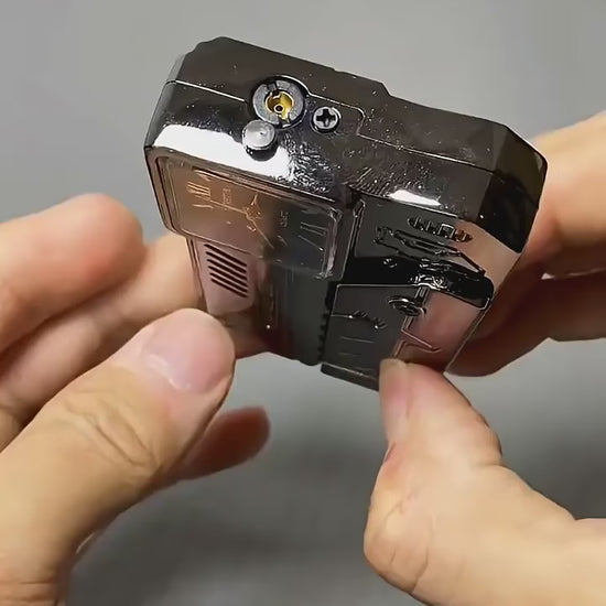 The Folding Gun Lighter + Dial Watch is a one-of-a-kind accessory that blends style, function, and novelty in a compact key chain design. Perfect for smokers and collectors, this lighter delivers a high-pressure blue flame for quick, reliable ignition ideal for lighting cigarettes, cigars, or candles, even in windy conditions.